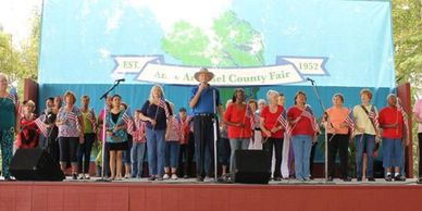 In 2007 Vicki Smith created the 'ShowStoppers' with about 20 performers. After two years of directing Vicki turned the torch over to Joanne DeWilde, who has continued to successfully direct and choreograph the group. The South County ShowStoppers are in their 10th year and going strong. The group is comprised of more than 40 volunteer senior citizens who perform variety shows with singing, dancing & comedy. Among the costumed performers are comedians, guitar and keyboard players, belly dancers, line dancers, tap and hula dancers. There are male and female singers, plus the 'group singers' called the "Harmony Grits". With ages ranging from 60 to 94 years young, all are energetic, enthusiastic and each share a commitment to oneself as well as to the community. The number and types of acts in a show is determined by the client’s needs. New acts are constantly being added to the group’s repertoire. As a result, every show is unique. The South County ShowStoppers' motto is, "We Aspire to Inspire before we Expire".Their reputation has grown tremendously and they’ve entertained at a large number of venues, including nursing homes, assisted living homes, senior centers, luncheons, county fairs and more. Phone calls keep coming in for show requests and the ShowStoppers are booked well in advance every year. The ShowStoppers gained County and Statewide recognition in 2011, as they were honored for their outstanding contributions in the field of aging & quality of life for senior citizens. The ShowStoppers are the winners of the 4th Annual Governor’s Leadership in Aging Award for the Performing Arts.